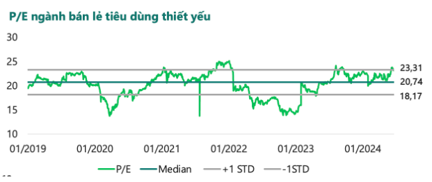 Thứ năm, nhóm bán lẻ tiêu dùng sẽ tiếp tục là tâm điểm khi vĩ mô tích cực thúc đẩy tiêu dùng, xu hướng tiêu dùng sản phẩm giá trị cao hơn và tín hiệu hồi phục từ doanh nghiệp đầu ngành.