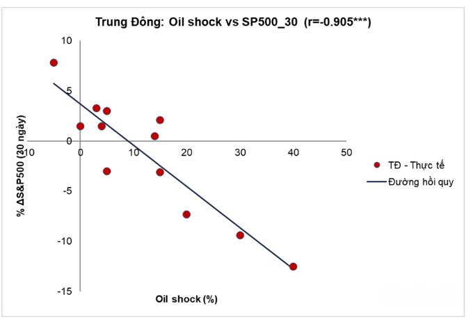 Chuyên gia của Yuanta cho biết nhóm nghiên cứu đã sử dụng mô hình hồi quy để đánh giá các yếu tố tác động đến thị trường. Riêng đối với các sự kiện tại Trung Đông, kết quả cho thấy giá dầu là biến số có tác động ngược chiều mạnh nhất tới diễn biến của S&P 500.