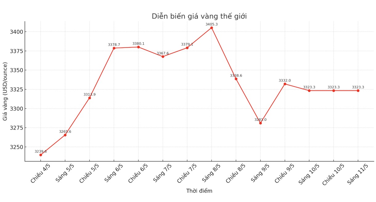 Đến 22h thứ Tư, giá vàng cố gắng lấy lại mốc 3.400 USD nhưng nhanh chóng lao dốc về 3.330 USD/ounce lúc 2h30 sáng hôm sau. Khi thông tin về cuộc gặp dự kiến giữa Mỹ và Trung Quốc được công bố vào sáng thứ Năm, vàng tiếp tục mất giá, rơi xuống 3.277 USD/ounce vào đầu phiên châu Á.