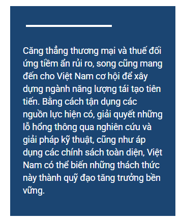 Năng lượng tái tạo Việt Nam có thể biến "nguy" thành "cơ" bằng cách phát triển sản xuất nội địa, đầu tư công nghệ và tận dụng lợi thế từ các hiệp định thương mại quốc tế (EVFTA, CPTPP).