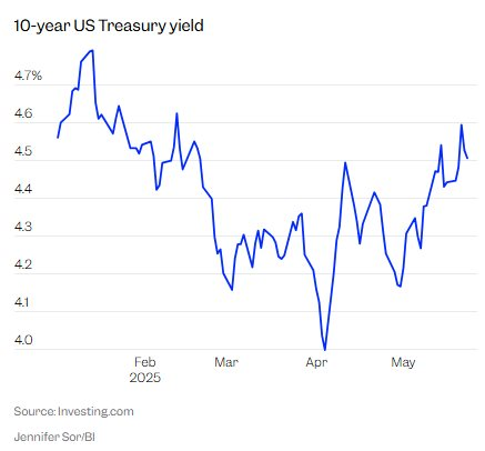 Lợi suất trái phiếu chính phủ Mỹ tăng đặc biệt cao trong những tuần gần đây. Nguyên nhân một phần là do lo ngại về thâm hụt ngân sách của Mỹ và lo ngại thuế quan của Tổng thống Trump sẽ làm giá cả tăng.