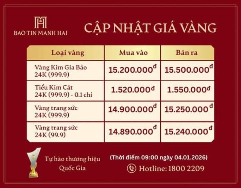 Giá vàng của Bảo Tín Mạnh Hải sáng 4/1.