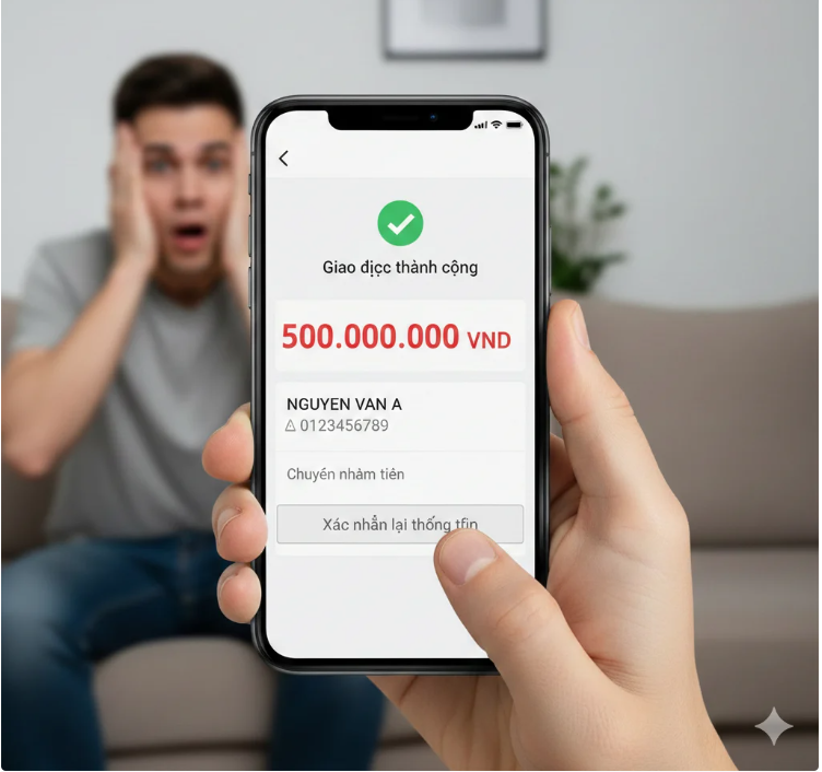 Ngày 10/11, chị Nguyễn Thị Thu Th. (trú xã Lao Bảo, tỉnh Quảng Trị) thực hiện giao dịch qua điện thoại thì do lỗi mạng đã chuyển nhầm 499.999.999 đồng vào tài khoản mang tên NGUYEN THE LU.