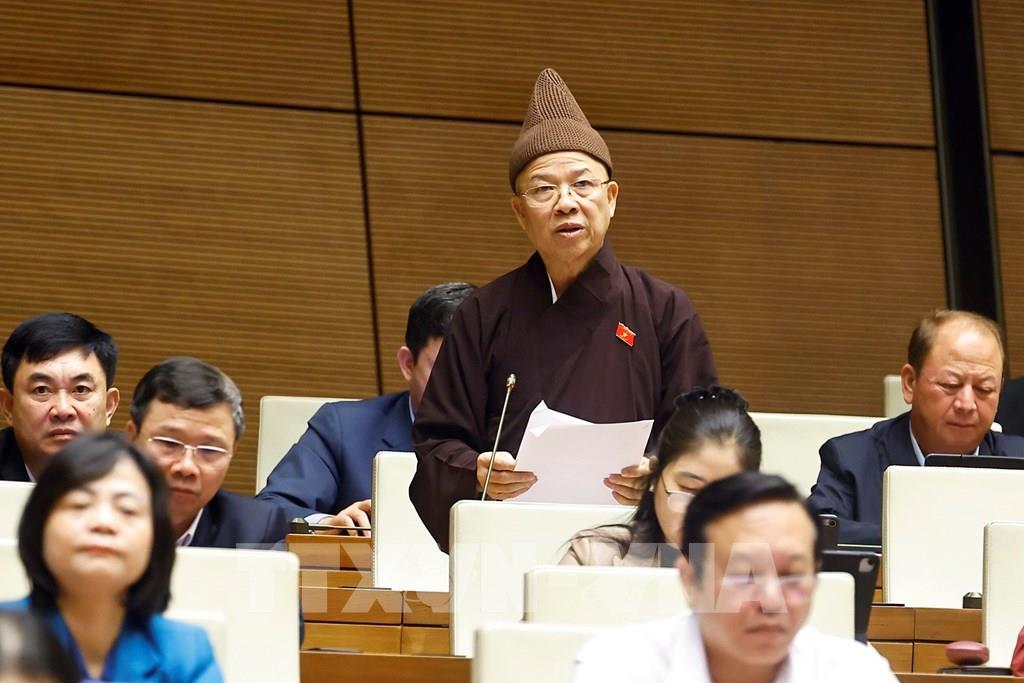 Hòa thượng Thích Thanh Quyết, Đại biểu Quốc hội tỉnh Quảng Ninh phát biểu. Ảnh: Doãn Tấn - TTXVN