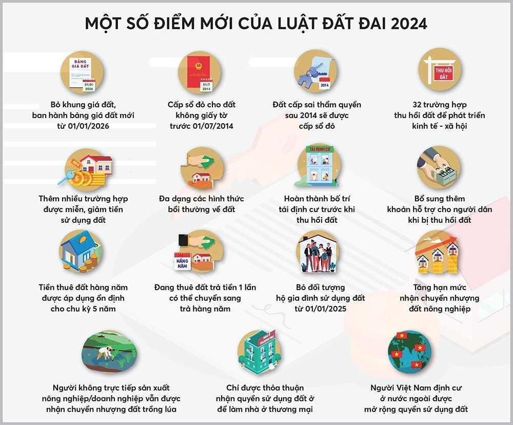 Giới chuyên gia đánh giá, Luật Đất đai 2024 sẽ phát huy và có hiệu quả ngay khi có hiệu lực, đặc biệt là các nội dung quyền của người sử dụng đất như: chính sách bồi thường, hỗ trợ, tái định cư khi Nhà nước thu hồi đất; chính sách đất đai đối với đồng bào dân tộc thiểu số; chính sách đất đai đối với người Việt Nam định cư ở nước ngoài là công dân Việt Nam; chính sách tài chính đất đai, giá đất; cho phép người sử dụng đất được sử dụng kết hợp đa mục đích; đẩy mạnh phân cấp, phân quyền, cải cách thủ tục hành chính, cắt giảm khâu trung gian trong quản lý, sử dụng đất, giảm bớt chi phí tuân thủ trong tiếp cận đất đai.