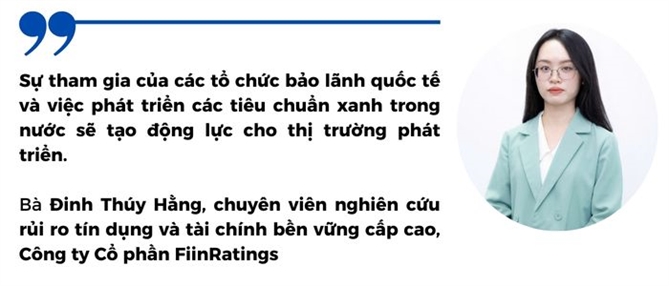 Tín hiệu đáng mừng là hiện nay, các doanh nghiệp đang chủ động xây dựng khung tài chính xanh/khung trái phiếu xanh và thực hiện đánh giá độc lập trước phát hành theo tiêu chuẩn quốc tế như của CBI và ICMA, với những khung phát hành tiên phong từ Công ty Điện Gia Lai, Ngân hàng BIDV, mới đây là Vietcombank, I.D.I và Công ty Nước Sạch Hòa Bình - Xuân Mai...