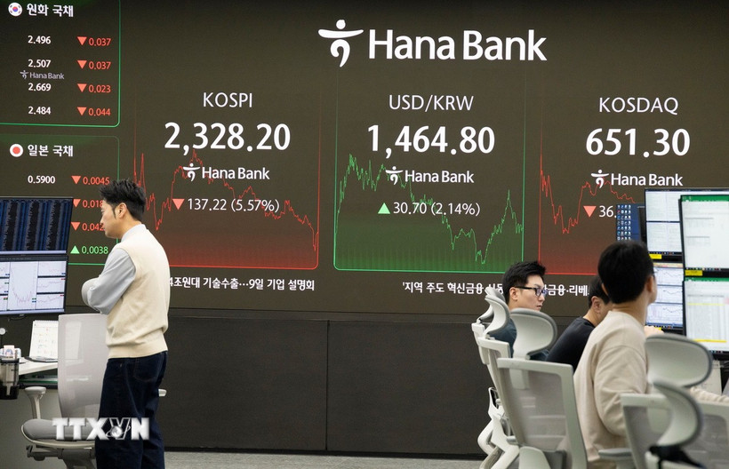Bảng chỉ số chứng khoán tại Seoul (Hàn Quốc). (Ảnh: THX/TTXVN)