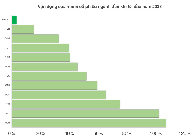 Xung đột Trung Đông leo thang đã khiến giá dầu tăng mạnh trong thời gian qua, hỗ trợ tích cực cho nhiều cổ phiếu dầu khí.