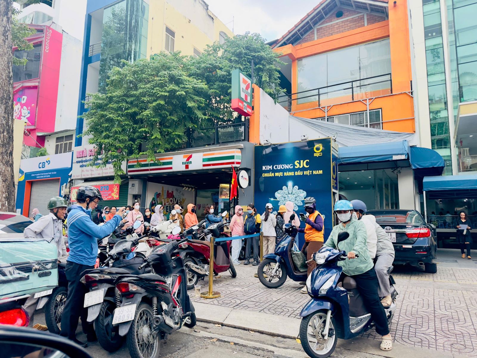 Dù vàng tăng giá, người dân vẫn xếp hàng chờ mua vàng.