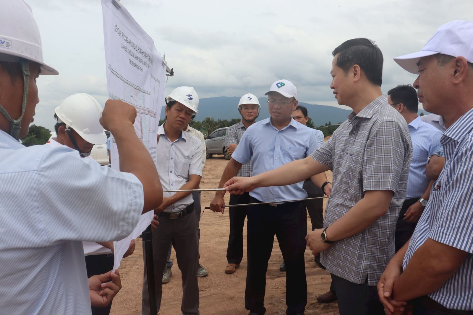 Bí thư Tỉnh ủy Nguyễn Hoài Anh trong chuyến kiểm tra thực tế tiến độ đầu tư hạ tầng KCN Sơn Mỹ 1.