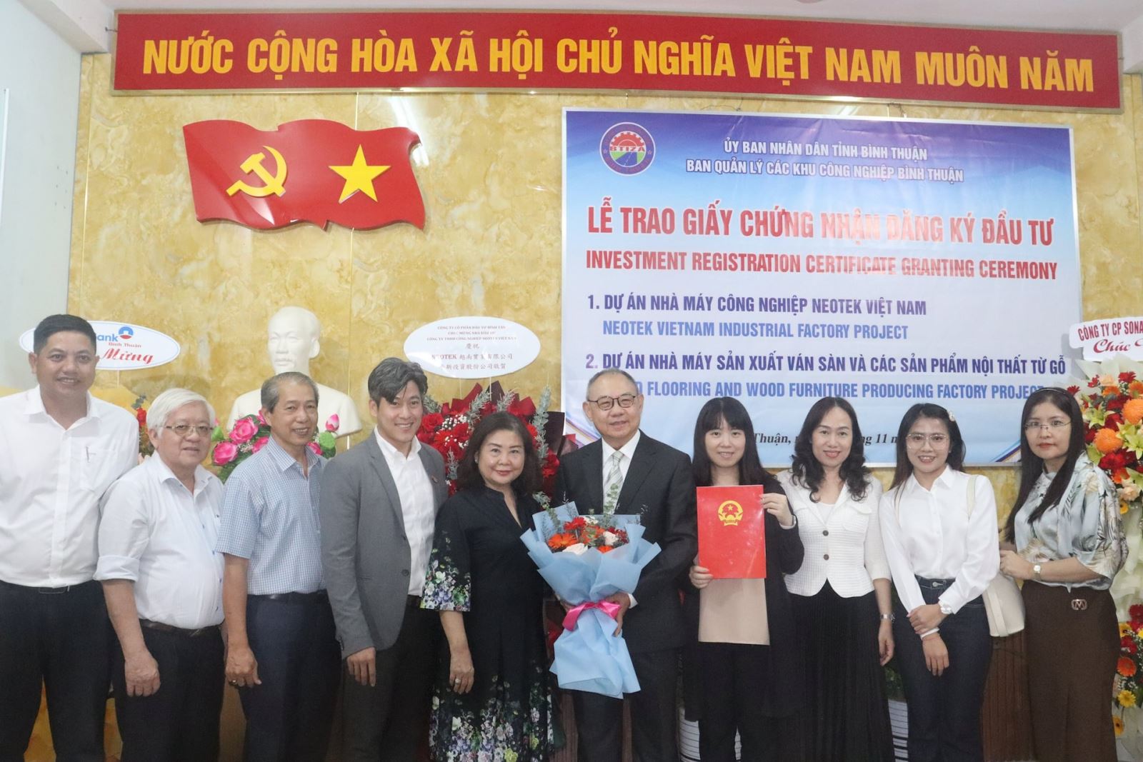 Trao Giấy chứng nhận đăng ký đầu tư cho dự án Nhà máy công nghiệp Neotek Việt Nam có tổng vốn hơn 2.200 tỷ đồng (tương đương 88 triệu USD).