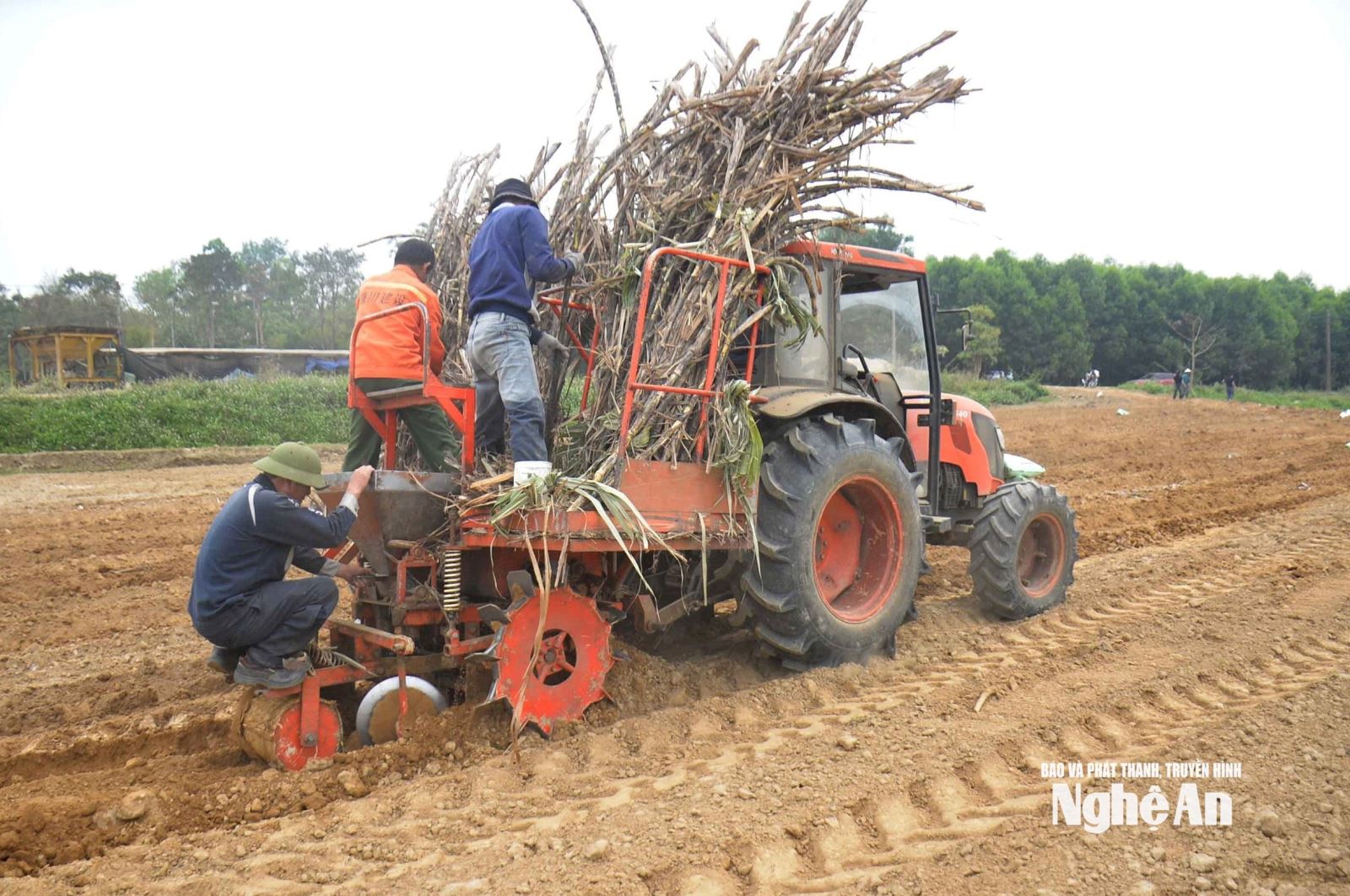 Áp dụng cơ giới hóa trong khâu làm đất và trồng mía mới trên vùng nguyên liệu mía của Công ty CP Mía đường Sông Con. Ảnh: Xuân Hoàng