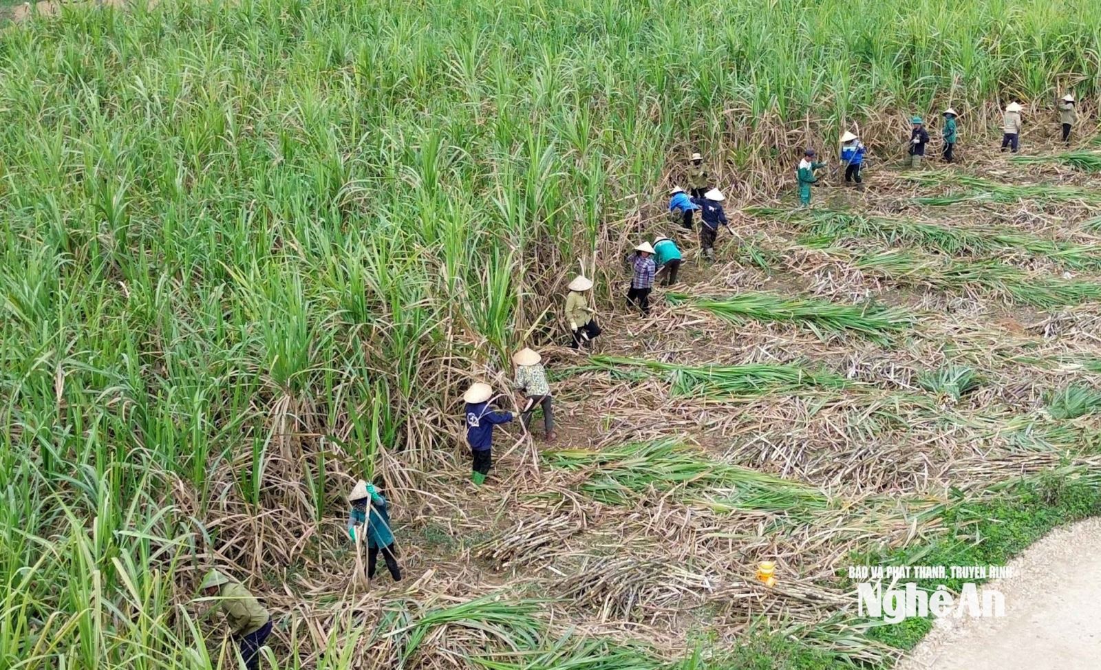 Nông dân xã Nghĩa Đồng thu hoạch mía nguyên liệu. Ảnh: Xuân Hoàng