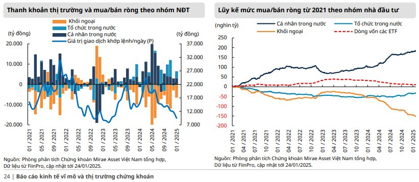 Theo Mirae Asset, dù định giá thị trường đã trở nên hấp dẫn hơn sau khi ghi nhận tăng trưởng lợi nhuận trong quý 4/2024, các nhịp điều chỉnh và tái tích lũy trong ngắn hạn là cần thiết để thiết lập các mức cân bằng mới.