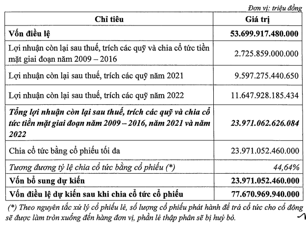 Một nội dung quan trọng sẽ được trình tại đại hội lần này là kế hoạch tăng vốn điều lệ thông qua việc phát hành cổ phiếu để trả cổ tức.
