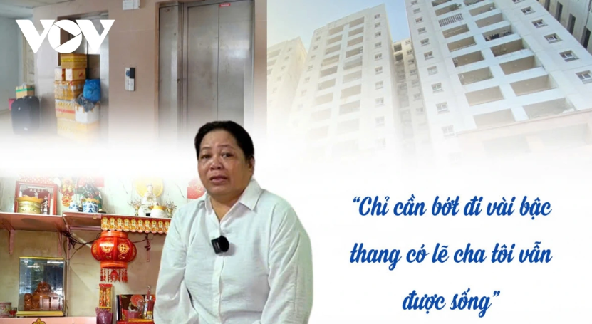Đặc biệt, đối với những người bệnh tật, mỗi lần đi cầu thang bộ đều là thử thách chứa đựng nhiều rủi ro. Đơn cử như trường hợp anh Bảo sống tại căn hộ tầng 12, bị tai biến nhiều năm, đi lại phải chống gậy nhưng hàng ngày cũng phải mò mẫm từng bậc thang để lên xuống “Tôi rất sợ bị ngã nhưng phải đi thang bộ chứ có cách nào khác đâu, chỉ mong thang máy sớm được sửa để người dân chúng tôi bớt vất vả”, anh Bảo chia sẻ