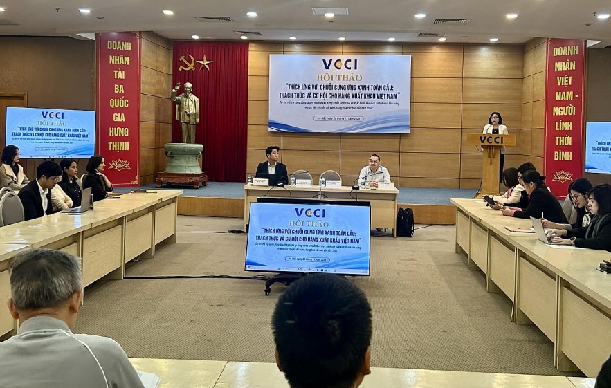 Ngày 26/11, Liên đoàn Thương mại và Công nghiệp Việt Nam (VCCI) tổ chức Hội thảo “Thích ứng với chuỗi cung ứng xanh toàn cầu: Thách thức và cơ hội cho hàng xuất khẩu Việt Nam” nhằm hỗ trợ cộng đồng doanh nghiệp xây dựng chiến lược và thực hành sản xuất kinh doanh bền vững, thân thiện môi trường.