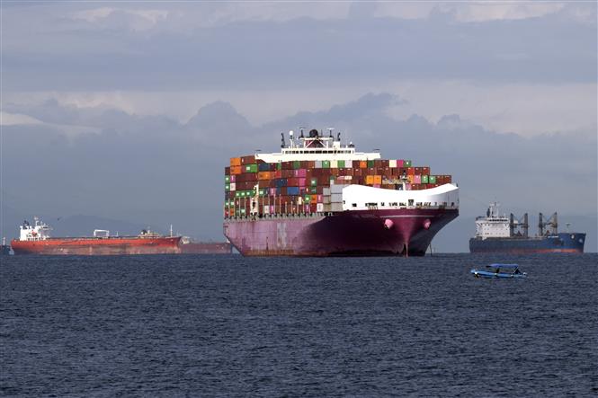 Tàu thuyền chờ qua kênh đào Panama ngày 10/9/2023. Ảnh: AFP/TTXVN