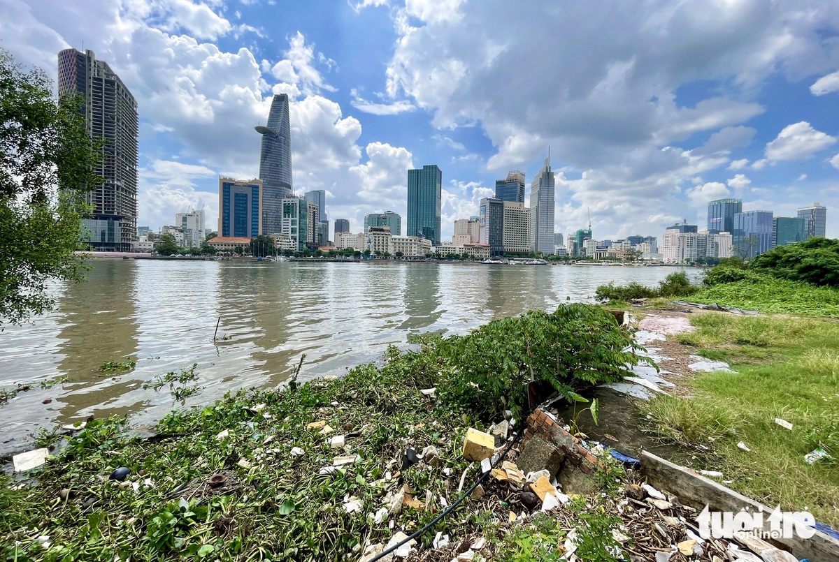 Nhớ lại tháng 8-2023, môi trường tự nhiên tại bờ sông Sài Gòn phía Thủ Thiêm vẫn còn những bãi bồi nhếch nhác, ô nhiễm do rác thải và khói bụi, ảnh hưởng đến cảnh quan chung của khu vực trung tâm TP, trực tiếp là khu vực bến Bạch Đằng, trung tâm quận 1.