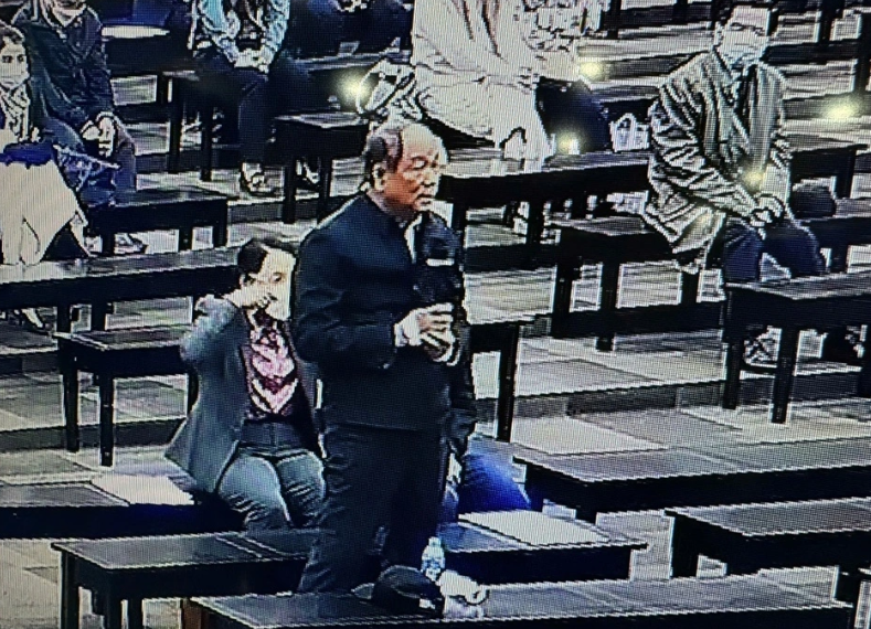 Cựu Bộ trưởng, Chủ nhiệm Văn phòng Chính phủ Mai Tiến Dũng hầu toà với tình trạng sức khoẻ yếu, cần người dìu do đang điều trị bệnh.