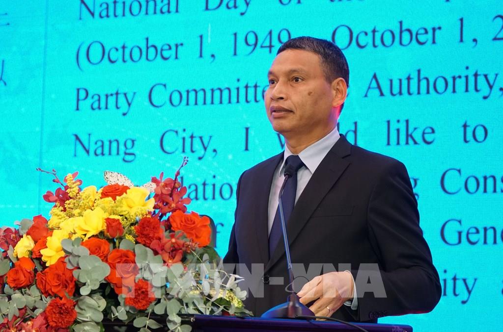 Phát biểu tại buổi lễ, Phó Chủ tịch thường trực UBND thành phố Đà Nẵng Hồ Kỳ Minh chúc mừng những thành tựu mà Trung Quốc đã đạt được trong những năm qua. Đồng thời cho biết, trong bối cảnh kỷ niệm 75 năm thiết lập quan hệ ngoại giao Việt Nam - Trung Quốc, quan hệ đối tác hợp tác chiến lược toàn diện giữa hai nước đã phát triển mạnh mẽ và sâu sắc. Thành phố Đà Nẵng tự hào đã và đang tích cực góp phần vun đắp tình hữu nghị hai nước, thông qua nhiều hoạt động hợp tác thiết thực với các địa phương của Trung Quốc.