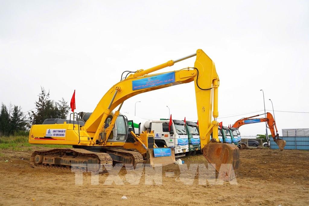 Nhà thầu huy động máy móc, thiết bị khởi công dự án. Ảnh: Quốc Dũng - TTXVN ;