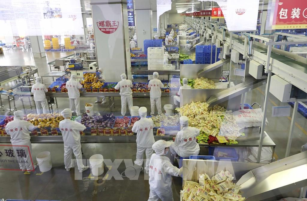Dây chuyền sản xuất, đóng gói sản phẩm bún ốc tại Khu công nghiệp bún ốc Liễu Châu, Quảng Tây (Trung Quốc). Ảnh: Công Tuyên-PV TTXVN