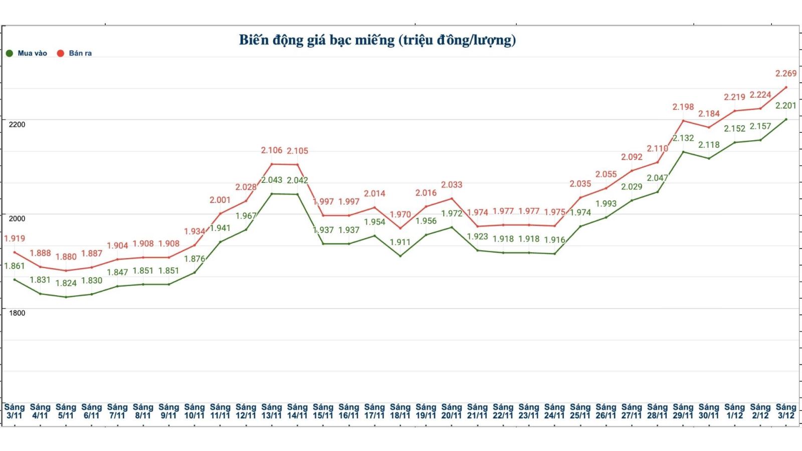 Diễn biến giá bạc trong nước những phiên gần đây. Biểu đồ: Phương Anh