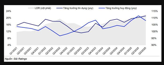 Trong báo cáo ngành ngân hàng mới đây, các chuyên gia S&I Ratings cho hay, sau giai đoạn bùng nổ phát hành giấy tờ có giá trong nửa đầu năm 2025, tốc độ huy động qua kênh này trong quý III/2025 bắt đầu chậm lại (giảm 2,7% so với quý trước). Tiền gửi của khách hàng cũng ghi nhận mức tăng khiêm tốn 1,7% so với quý trước.