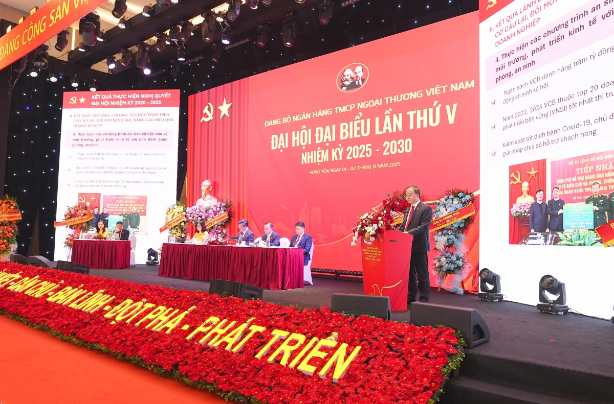 Ngày 02/8/2025, tại Hội trường chính của Trường Đào tạo và Phát triển nguồn nhân lực Vietcombank (xã Phụng Công, tỉnh Hưng Yên), Đảng bộ Ngân hàng TMCP Ngoại thương Việt Nam (Vietcombank) đã trang trọng tổ chức Đại hội đại biểu Đảng bộ lần thứ V, nhiệm kỳ 2025 - 2030.
