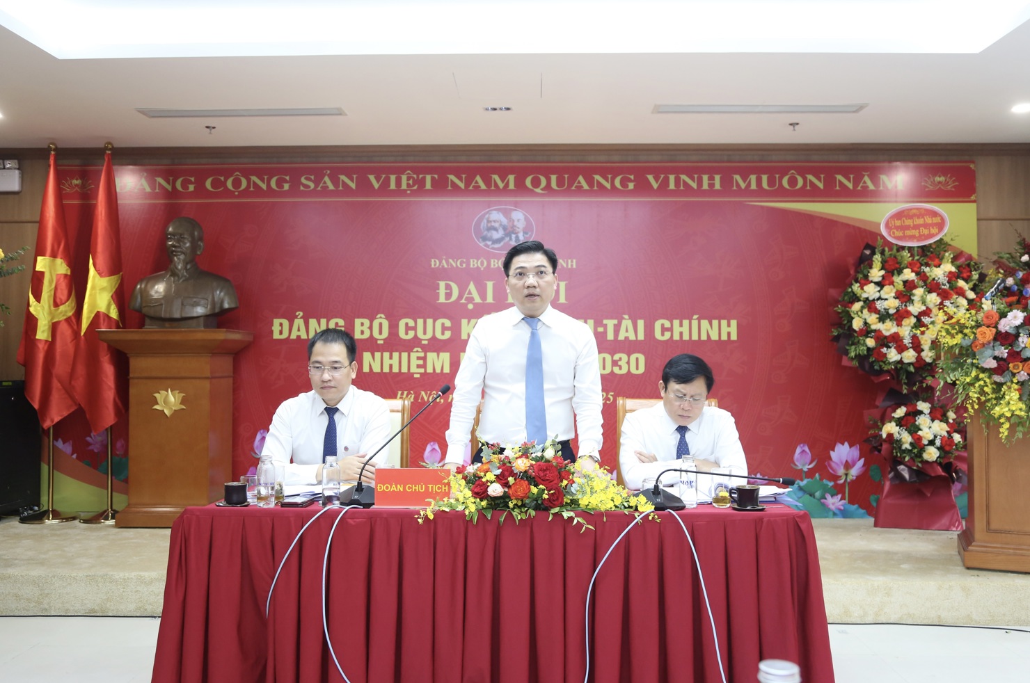 Trình bày báo cáo chính trị tại Đại hội, đồng chí Nguyễn Đức Thọ - Ủy viên Ban Thường vụ Đảng ủy Cục KHTC cho hay, nhiệm kỳ 2020-2025, Đảng ủy Cục KHTC đã lãnh đạo, chỉ đạo các chi bộ thực hiện và phối hợp có hiệu quả với các đơn vị liên quan triển khai hoàn thành tốt nhiệm vụ chính trị, chuyên môn được giao, đáp ứng yêu cầu, chỉ đạo của Đảng ủy Bộ Tài chính và lãnh đạo Bộ với nhiều kết quả nổi bật.