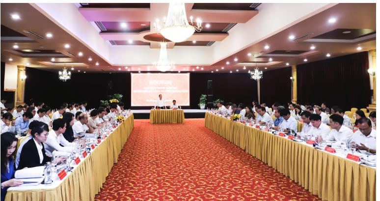 Hội nghị giữa Ban Chấp hành Đảng bộ TP. Đà Nẵng và tỉnh Quảng Nam để cho ý kiến về xây dựng văn kiện Đại hội lần thứ XXIII Đảng bộ TP. Đà Nẵng mới, nhiệm kỳ 2025-2030 diễn ra vào ngày 6/6. Ảnh: Báo Đà Nẵng.