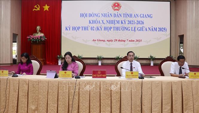 Ngày 29/7, tại phường Rạch Giá, Hội đồng nhân dân tỉnh An Giang khóa X, nhiệm kỳ 2021 - 2026 tổ chức Kỳ họp thứ 2 (kỳ họp thường lệ giữa năm 2025) để xem xét, thảo luận và thông qua 13 nghị quyết quan trọng về phát triển kinh tế - xã hội, phân bổ ngân sách, vốn đầu tư công, cơ chế chính sách đặc thù và định hình phương hướng phát triển của tỉnh trong giai đoạn mới.