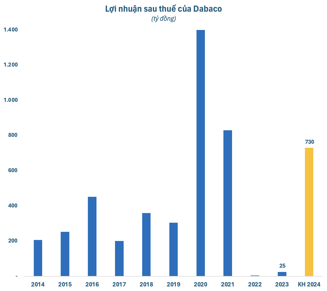 Tại Đại hội, Dabaco sẽ trình cổ đông thông qua kế hoạch kinh doanh 2024 đầy tham vọng với doanh thu (bao gồm cả doanh thu nội bộ) đạt 25.380 tỷ đồng, tăng trưởng 14% so với thực hiện năm ngoái. Chỉ tiêu lợi nhuận sau thuế dự kiến 729,8 tỷ đồng, gấp 29 lần kết quả đạt được năm 2023.