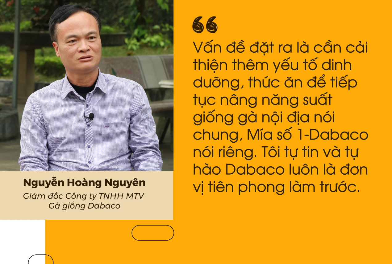 Sau làn sóng thứ 1 là lai tạo giống gà ngoại với gà nội thành con lai thả vườn, tôi cho rằng, Mía số 1-Dabaco sẽ là giống khởi đầu cho làn sóng thứ 2 của gà thả vườn đặc sản, đưa gà lông màu Việt Nam lên một đẳng cấp mới.