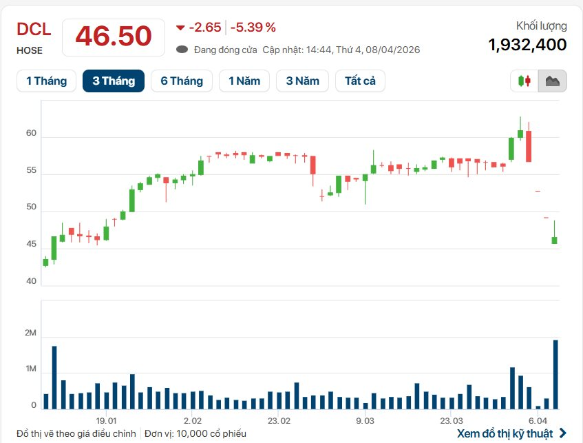 Rộng hơn, hồi đầu tháng 10/2025, cổ phiếu DCL giao dịch ở ngưỡng 30.000 đồng/cổ phiếu, sau đó mã cổ phiếu dược này hút mạnh dòng tiền từ các nhà đầu tư, liên tục thiết lập đỉnh giá lịch sử mới. Tính đến đầu tháng 4 vừa giá, thị giá cổ phiếu DCL đã tăng hơn 100% chỉ sau nửa năm.