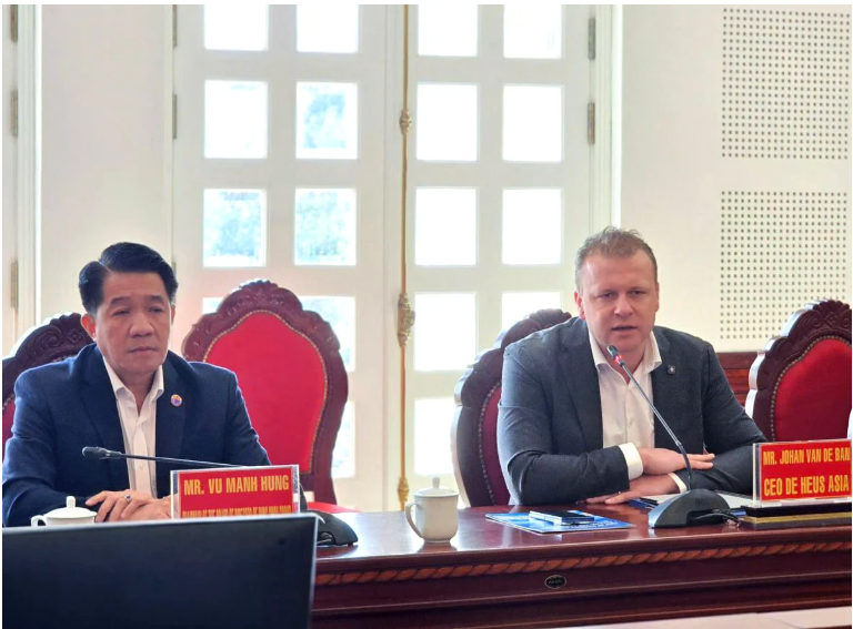 Ông Johan Van Den Ban, Tổng Giám đốc Tập đoàn De Heus Việt Nam và châu Á (bên phải) cùng ông Vũ Mạnh Hùng, Chủ tịch Tập đoàn Hùng Nhơn tại buổi làm việc. Ảnh: Cổng TTĐT Gia Lai