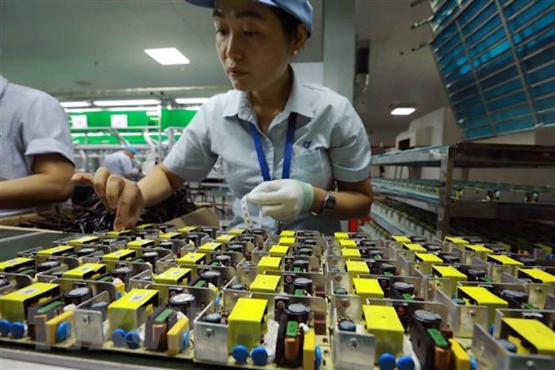 Lắp ráp linh kiện điện tử dùng cho ngành máy in tại Công ty TNHH công nghệ điện tử Chee Yuen Việt Nam ở Khu công nghiệp An Dương (Hải Phòng). Ảnh: TTXVN