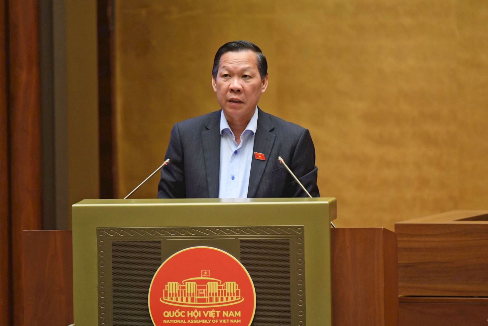 Bộ trưởng Bộ Xây dựng Trần Hồng Minh trình bày Tờ trình về chủ trương đầu tư Dự án đầu tư xây dựng đường vành đai 4 TP. Hồ Chí Minh. Ảnh: ST