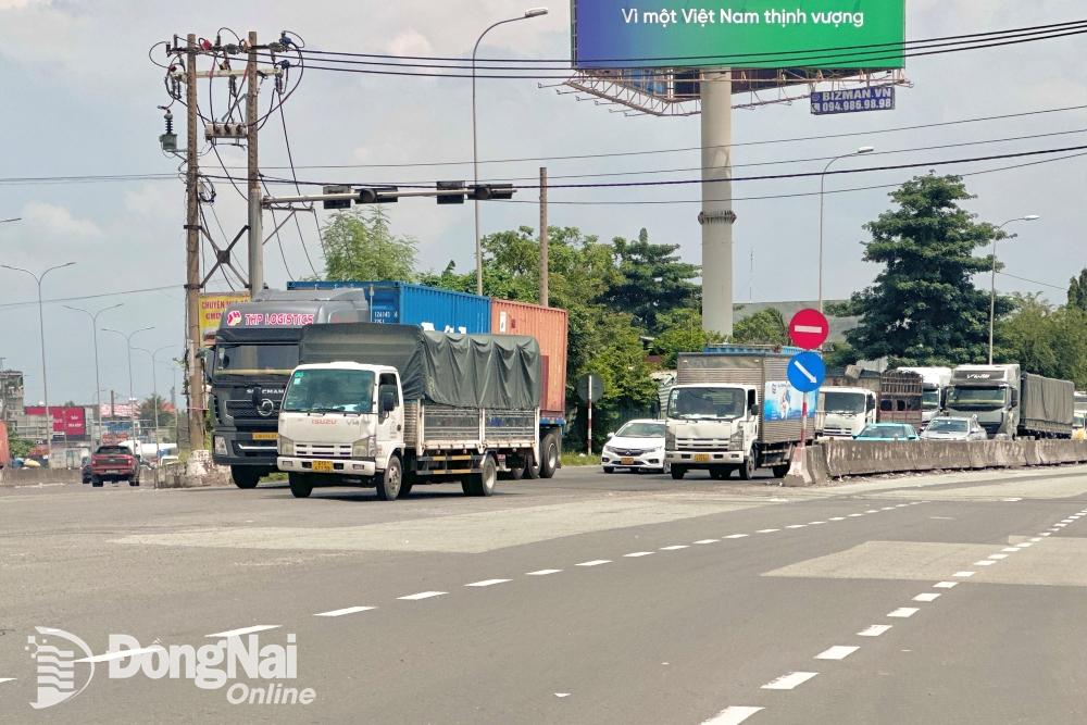 Cụm nút giao Cổng 11 (thành phố Biên Hòa) là khu vực có mật độ xe đông, thường xuyên có ùn tắc cục bộ. Ảnh: Đăng Tùng