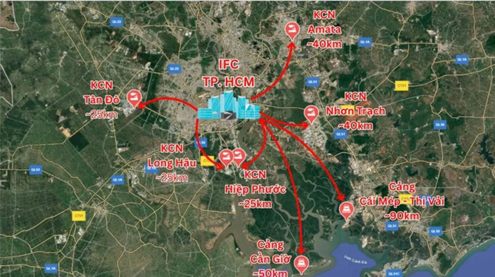 IFC tại TP.HCM kết nối thuận tiện với các khu sản xuất lớn của Đông Nam bộ, cảng biển, sân bay quốc tế... (Nguồn: Sở Tài chính TP.HCM)
