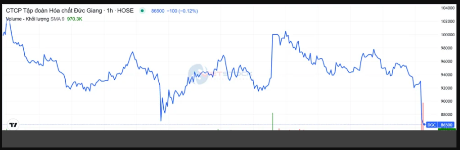 Phiên ngày 16/12, cổ phiếu DGC của CTCP Tập đoàn Hóa chất Đức Giang bất ngờ bị bán mạnh. Chốt phiên sáng, mã chứng khoán này giảm sàn xuống 86.500 đồng/cp, dư bán sàn 1,1 triệu đơn vị. Nếu tính từ giữa tháng 11, mã DGC giảm 13,4%.