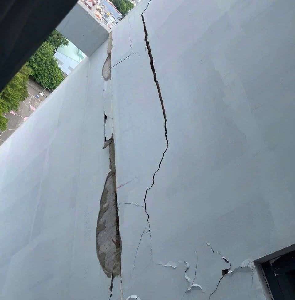 Vết nứt chung cư Lapen nhìn rõ bằng mắt thường.
