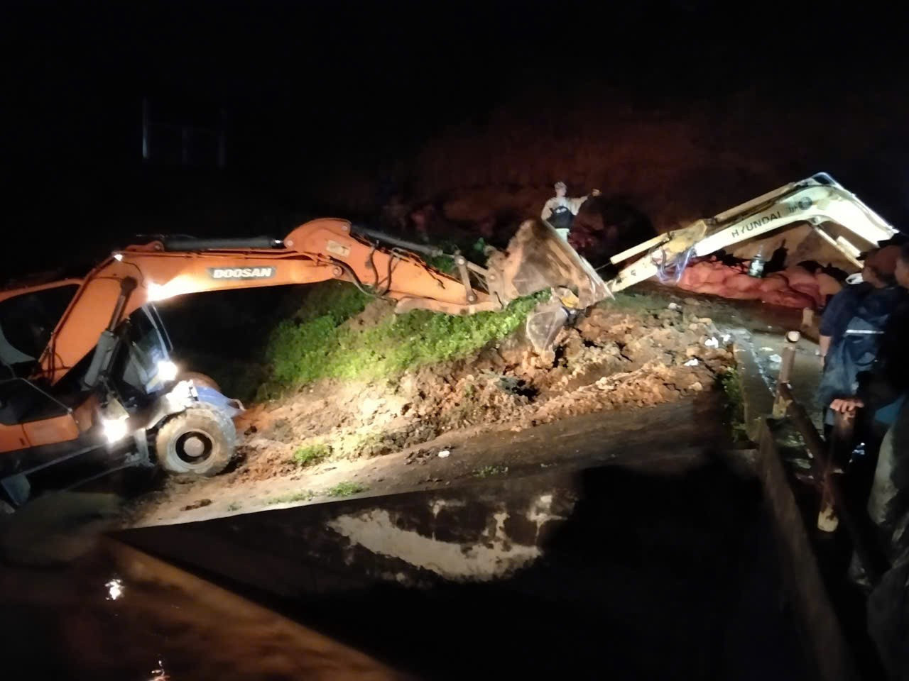 Lực lượng chức năng khẩn trương đảm bảo an toàn đập hồ thủy lợi Cay An.