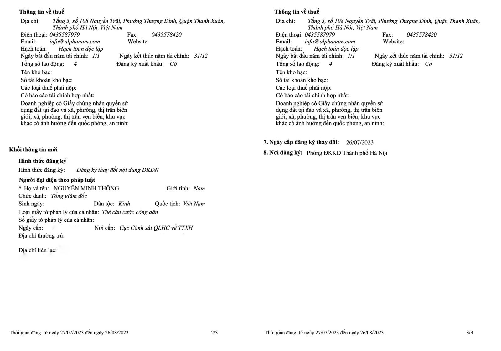 Trong khi đó, cập nhật theo công bố nội dung đăng ký doanh nghiệp mới nhất được đăng tải trên Cổng Thông tin quốc gia về đăng ký doanh nghiệp của Địa ốc Alphanam vào tháng 7/2023 cho thấy, doanh nghiệp này chỉ có 4 lao động theo kê khai thuế. Cũng cần nhấn mạnh rằng, việc chủ đầu tư dự án Alphanam Luxury công bố chỉ 4 lao động trong một thời gian khá dài (từ khoảng năm 2018).