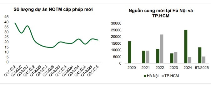 Theo đánh giá của VCBS Research, nguồn cung nhà ở được cải thiện nhờ những giải pháp quyết liệt về pháp lý để hỗ trợ thị trường như: Nghị quyết 171 gỡ vướng về quyền sử dụng đất cho các dự án nhà ở thương mại; Nghị định 76/2025/NĐ-CP quy định phương pháp tính tiền sử dụng đất, tháo gỡ rào cản cho 64 dự án chậm tiến độ. Bên cạnh đó, các chủ đầu tư tiếp cận tốt với các nguồn tài chính từ ngân hàng khi điều kiện pháp lý của dự án được hoàn thiện, giúp cải thiện trạng thái thanh khoản đảm bảo tiến độ triển khai các dự án mới. Ngoài ra, một số chủ đầu tư lớn dự kiến ra mắt các đại dự án vào nửa cuối năm 2025 có thể tạo ra làn sóng mới cho thị trường khu vực.