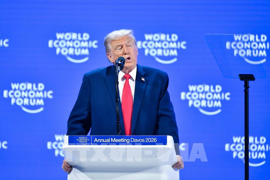 Tổng thống Mỹ Donald Trump phát biểu tại hội nghị Diễn đàn Kinh tế Thế giới (WEF) ở Davos, Thụy Sĩ, ngày 21/1/2026. Ảnh: THX/TTXVN