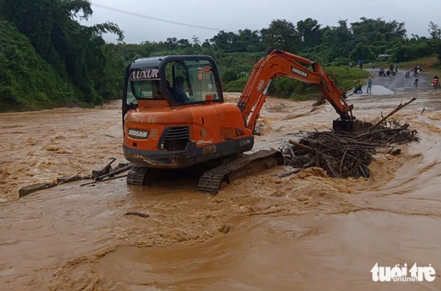 Mỗi khi có mưa, người dân phải dùng máy xúc cá nhân để tạm thông đường - Ảnh: HOÀNG TÁO