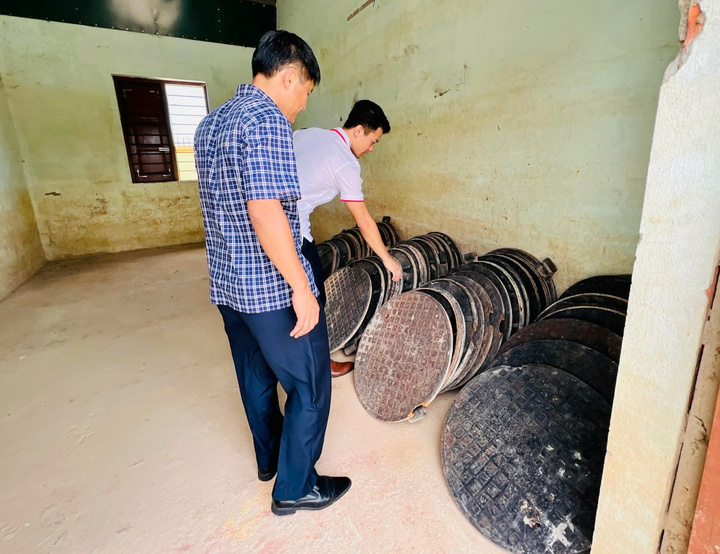 54 nắp hố ga bằng gang được cơ quan chức năng thu hồi đưa về kho Ban Quản lý dự án đầu tư xây dựng và phát triển quỹ đất Lệ Thủy. (Ảnh: N.L)