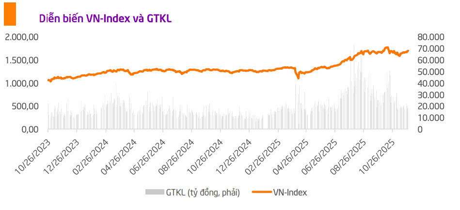 Thị trường cũng chờ đợi kết quả nâng hạng của FTSE vào tháng 3/2026, có thể tạo động lực đưa P/E về lại mức trung bình 10 năm. Bên cạnh đó, lợi nhuận doanh nghiệp dự kiến tăng hơn 20% trong quý IV và duy trì tích cực sang 2026, nhất là với nhóm sản xuất – xuất khẩu khi đơn hàng phục hồi nhưng giá cổ phiếu vẫn ở mức hấp dẫn.